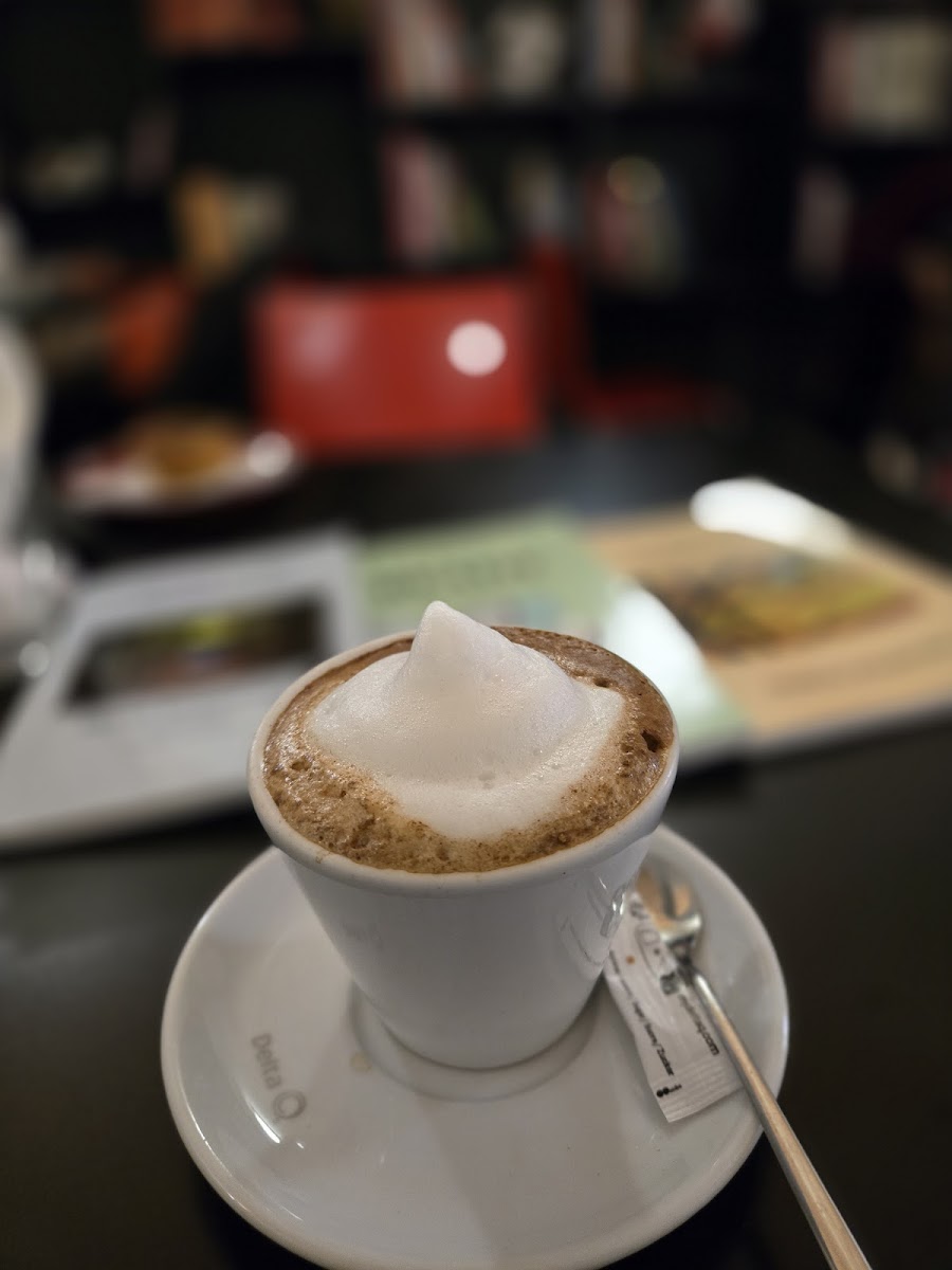 Because it’s nestled at the end of a sprawling bookshop, many come here to decompress with a good read, or perhaps to replace a cherished volume. Outdoor seating is available for fresh air and people-watching on quieter streets, while inside the space remains welcoming without feeling cramped, thanks to its architectural character.